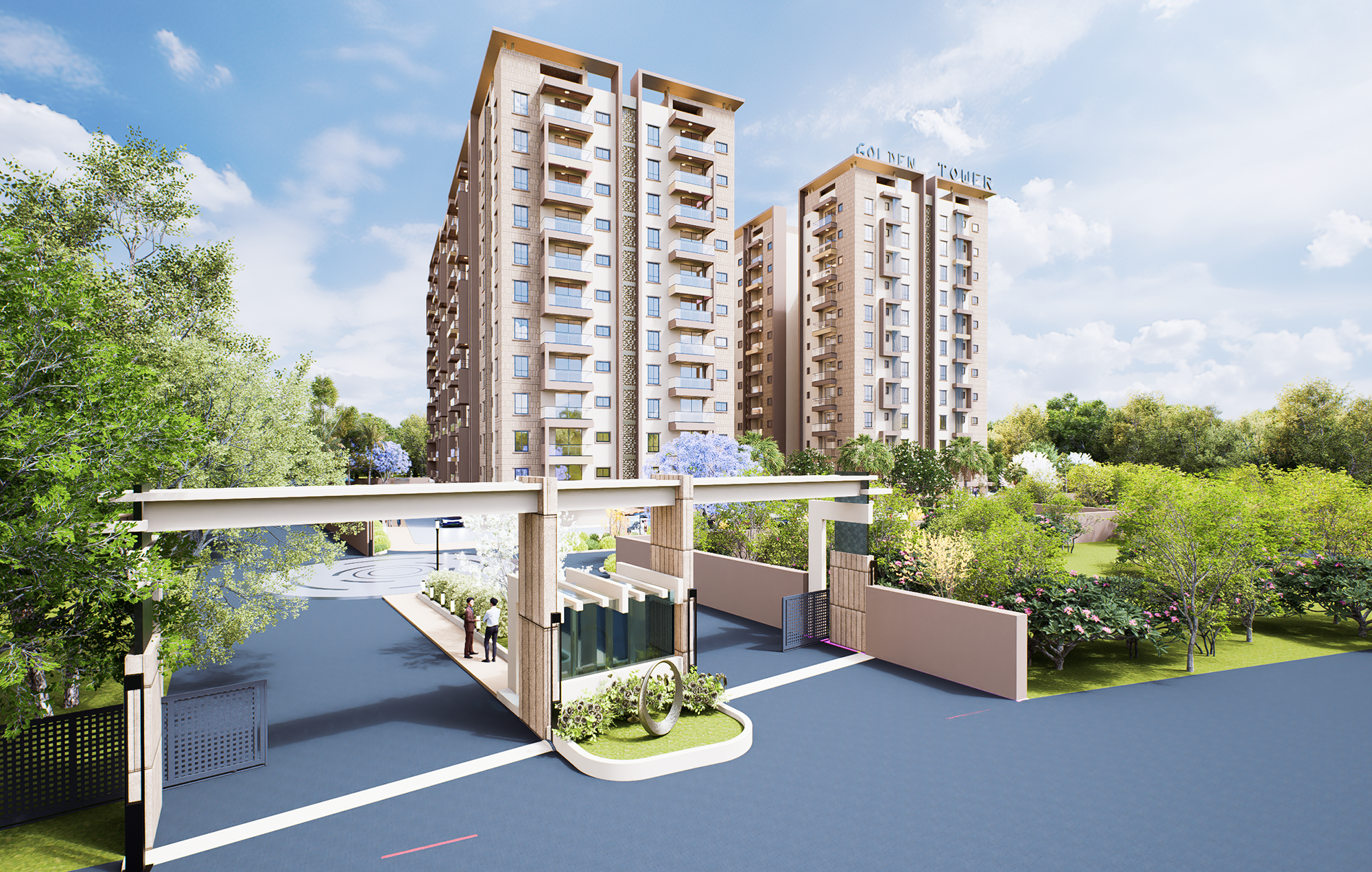 Golden Towers offers a serene retreat spread over 3 ACRES, with 2 TOWERS and 242 REFINED RESIDENCES. Experience elegance with lush greenery and thoughtfully crafted homes that invite comfort, convenience, and natural beauty.