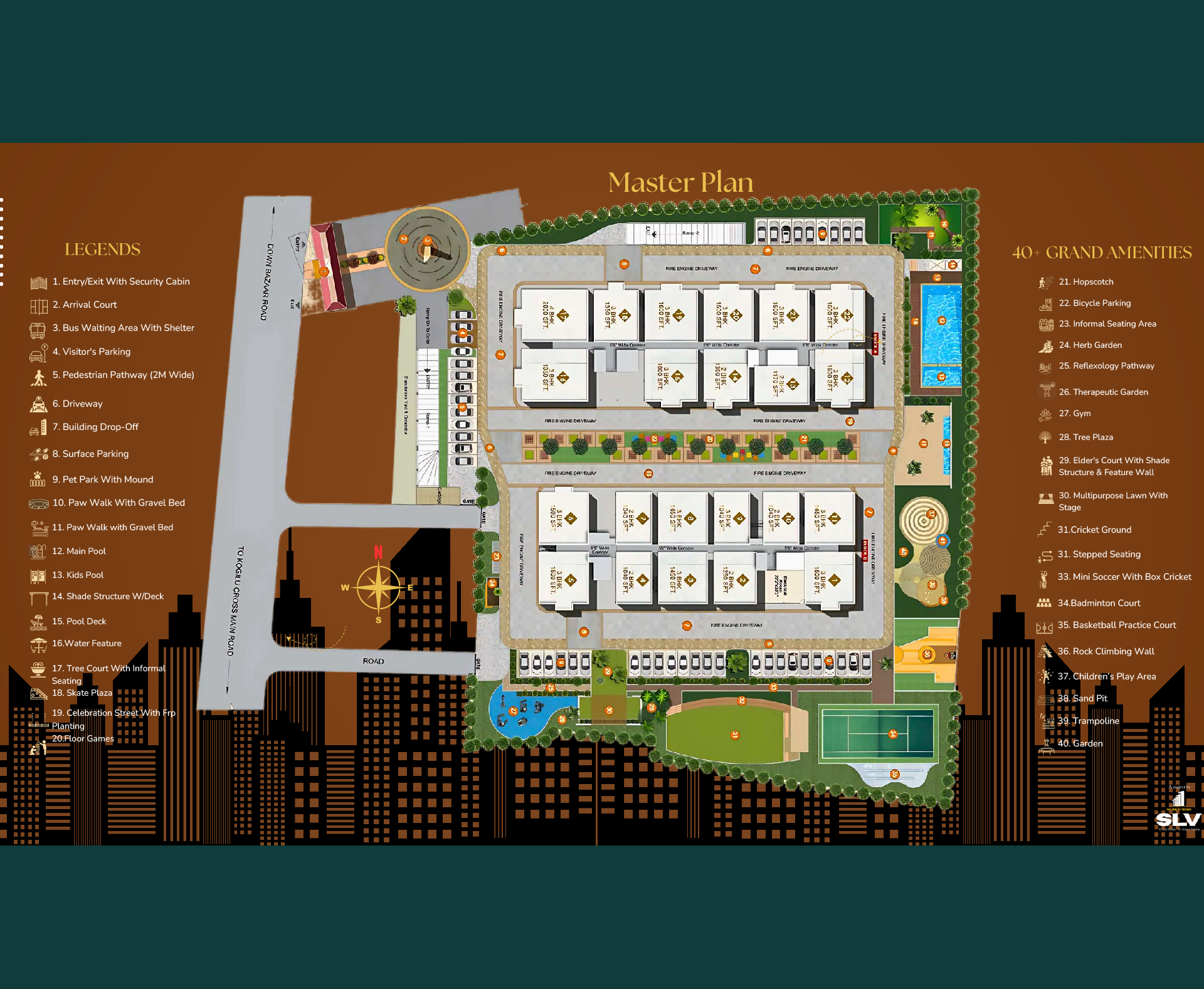 Gated Entry with 24/7 Security. Seperate Entry & Exit Points for Efficient Traffic Flow. Boom Barriers & RFID Access for Residents. Visitor Management System for Added Security. Well-Lit Driveways & Pedestrian-Friendly Access.
